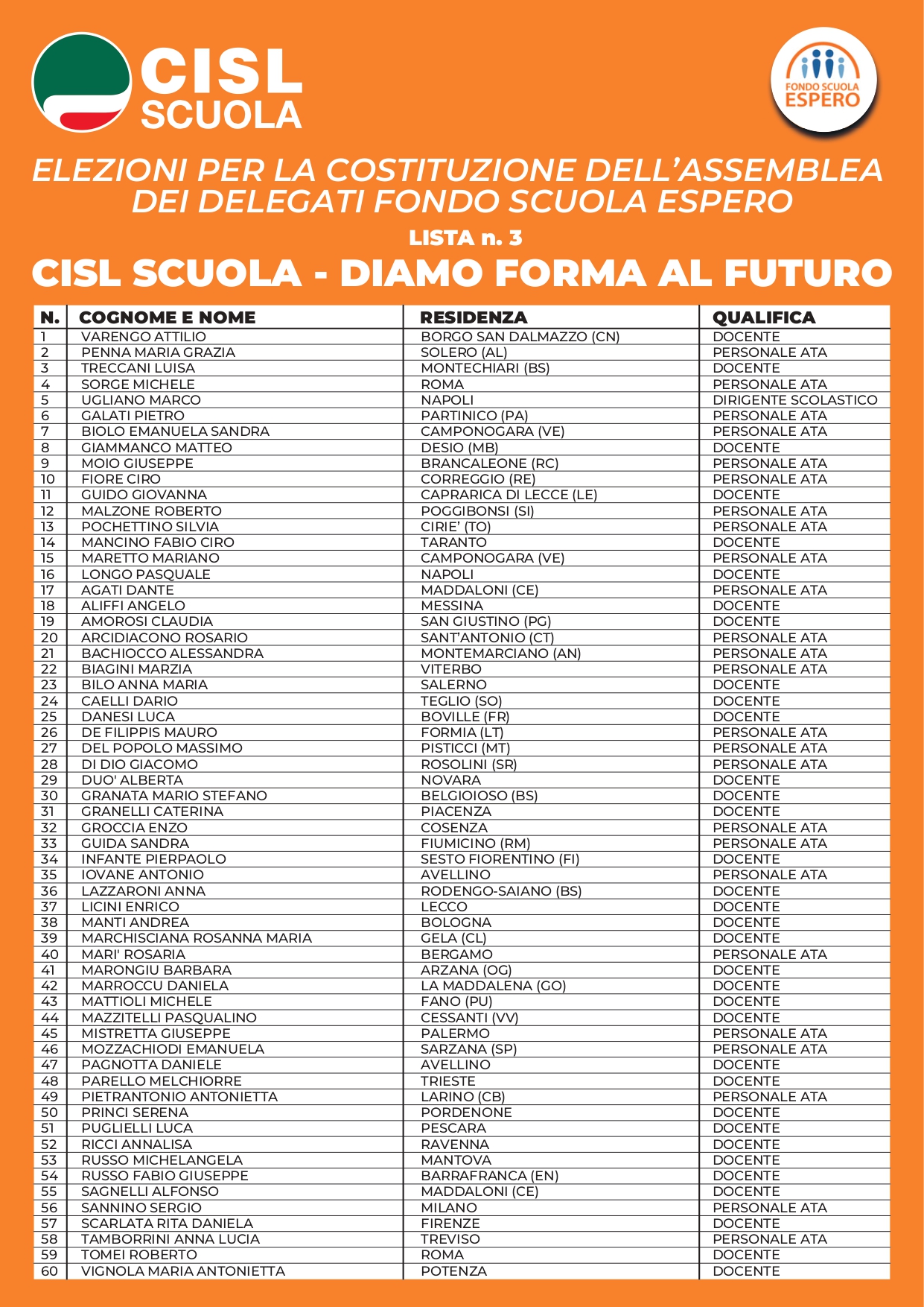 La CISL Scuola è presente con la lista n. 3 contraddistinta dal motto